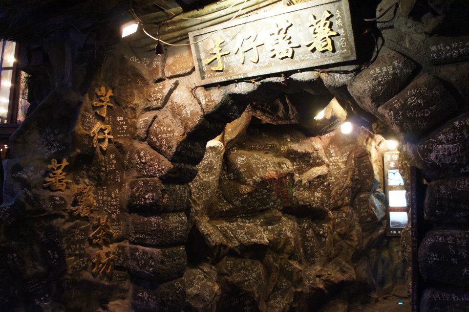 與阿妹茶樓一樣是喝茶的好地方,不同的是『芋仔蕃薯茶坊』隱身在秘密通道「穿屋巷」,這種巷子是通過別人家的屋頂或是地下室的通道,因為九份的地形較特別,多半的房子都蓋在斜坡上(所以才又稱為山城),因此才會蓋出這樣特別的秘密通道。想要到芋仔番薯就需要經過秘密通道才能抵達唷!與阿妹茶樓的奢華中式風不同的是,芋仔番薯是間古意盎然的茶坊,如果有機會來九份老街的朋友,不妨可以來這裡喝茶吃小點或是用餐,都是不錯的選擇。