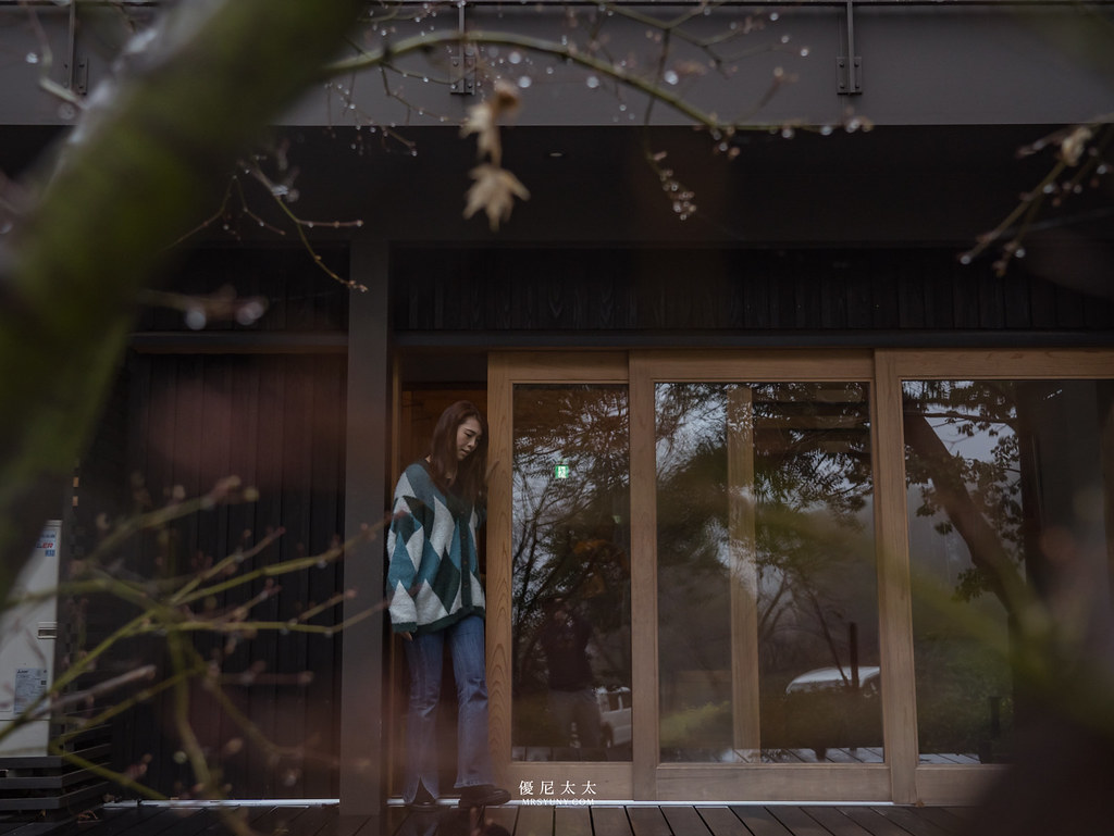 當初會被這間旅館給吸引,便是其全黑的建築及內部暖色系的木造設計,位在山坡地上的兩層樓旅店,穿過小石車道後抵達旅店停車場,眼觀四周林蔭圍繞,伴隨山區的氤氳水氣,實在愜意。推開木質大門,便是熟悉的日式暖色木造氛圍,彷彿來到林中小屋,光是坐其中就覺得舒適。(櫃檯平日有台灣接待員可以協助Check-in)