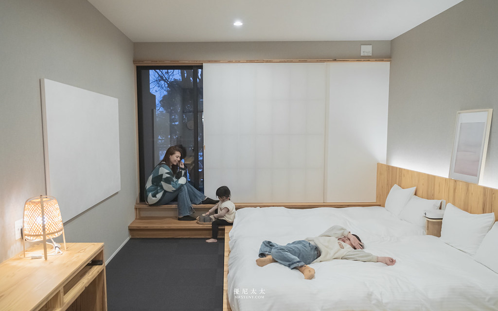 這間旅店的設計風格實在太喜歡了,雖然沒有大眾泡湯池,但是把所有空間都回歸到房間內,最小的雙人房也有18平米的空間。整間旅店總共有16間面向花園的房間,可以觀察到來此入住的旅人,非常多親子家庭客(因為鄰近九州自然動物園),外加許多自駕的日本當地旅人。簡單舒服的環境,卻讓我印象深刻,回歸單純的舒適,在這山間樹林中得到片刻的安寧。