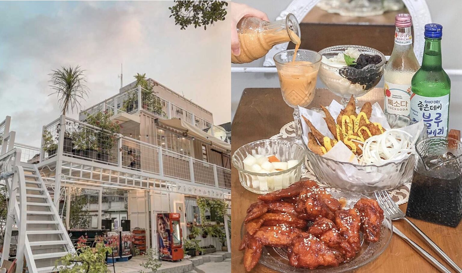 兩層樓的白色貨櫃與綠意植栽所建構而成的耍廢炸雞,是耍廢特區中的熱門美食,平價的韓式炸雞與燒酒,就能療癒式的趕走一整天上班的倦怠。