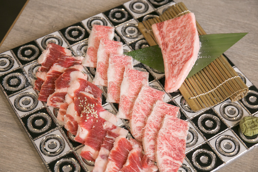 這次選擇的套餐是和牛套餐,整個套餐的肉量多,肉品部分有A5和牛牛排、A5白老牛小排、A5和牛嫩肩小排、澳洲和牛橫隔膜、澳洲和牛小排、安格斯羽下嫩肩,和牛本身就是屬於油脂特別豐富的肉質,看看這些肉品的雪花分佈,簡單在烤盤上快速炙烤後,就可以享受和牛在嘴裡化開的甜美滋味,隔著螢幕都可以感受到那個和牛的鮮甜。