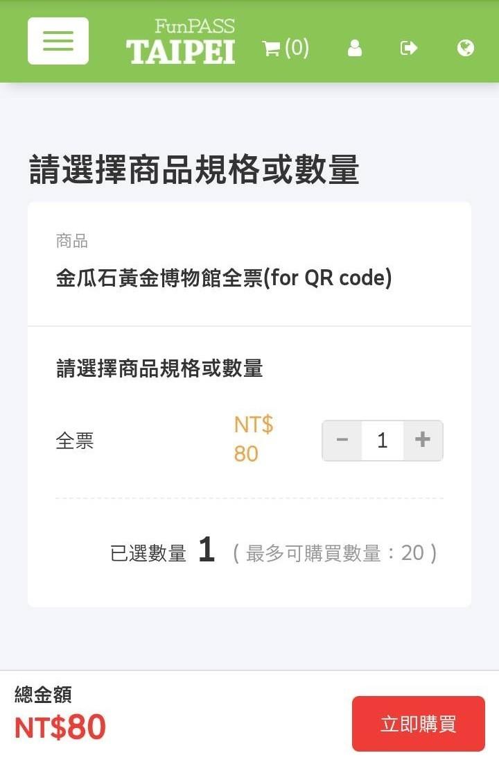 進入 金瓜石黃金博物館門票線上購票,並點擊[立即購買]鍵